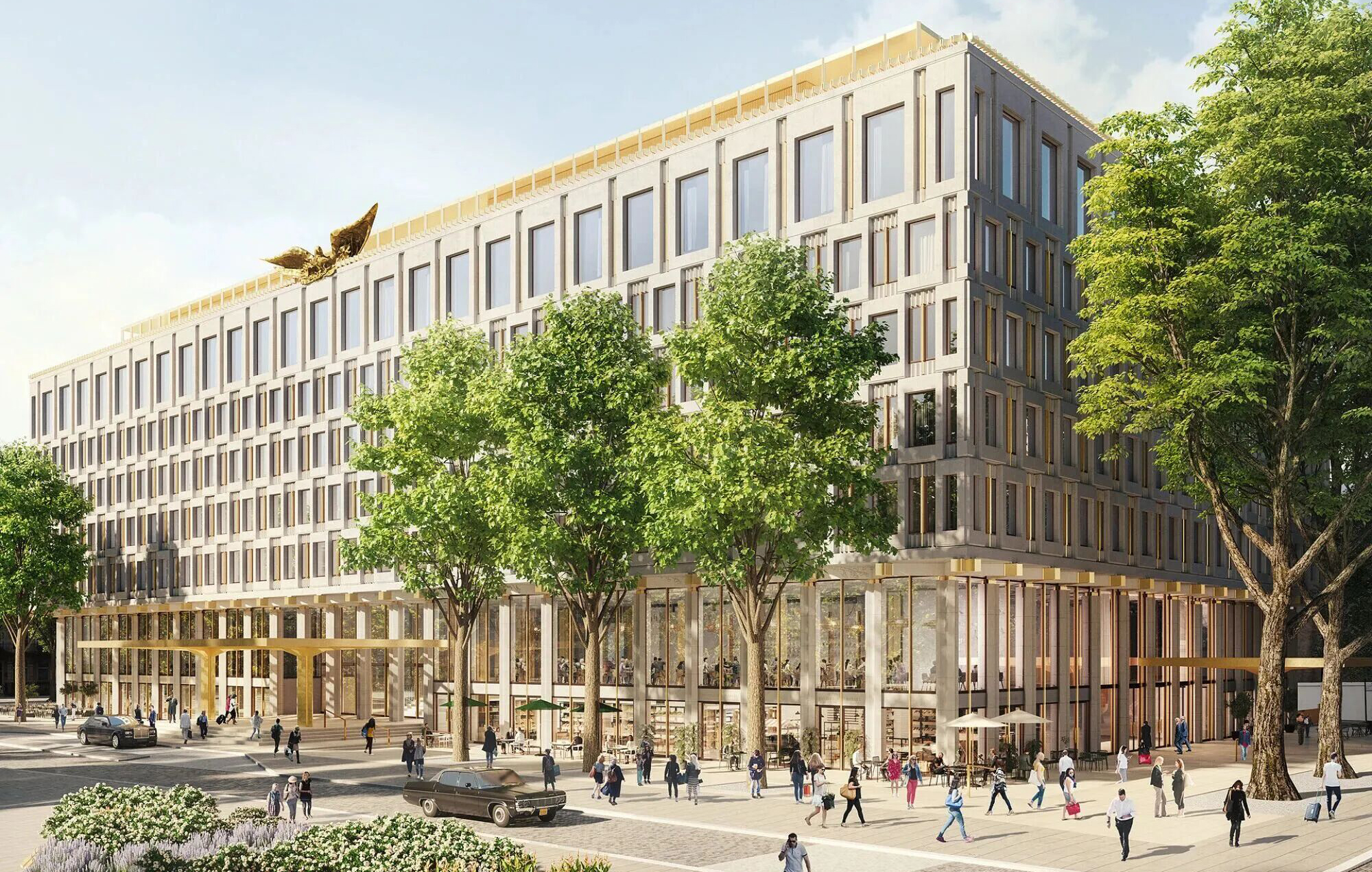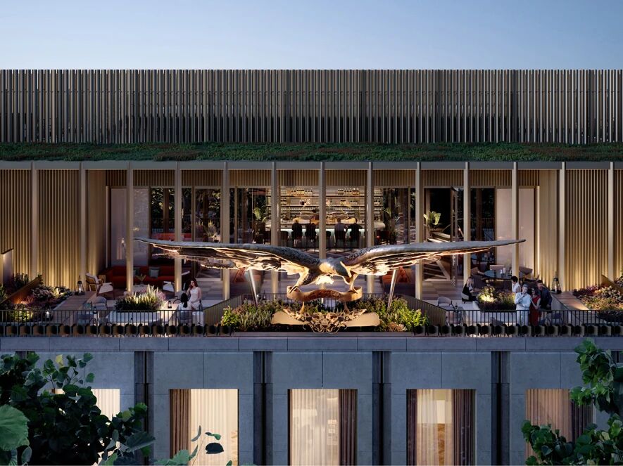 圍繞鍍金雕鷹的屋頂露臺,提供格羅夫納廣場與海德公園全景視野,未來將成倫敦天際線勝地。