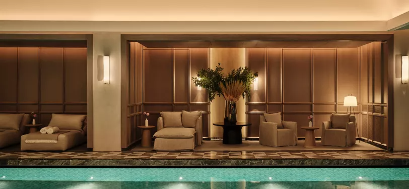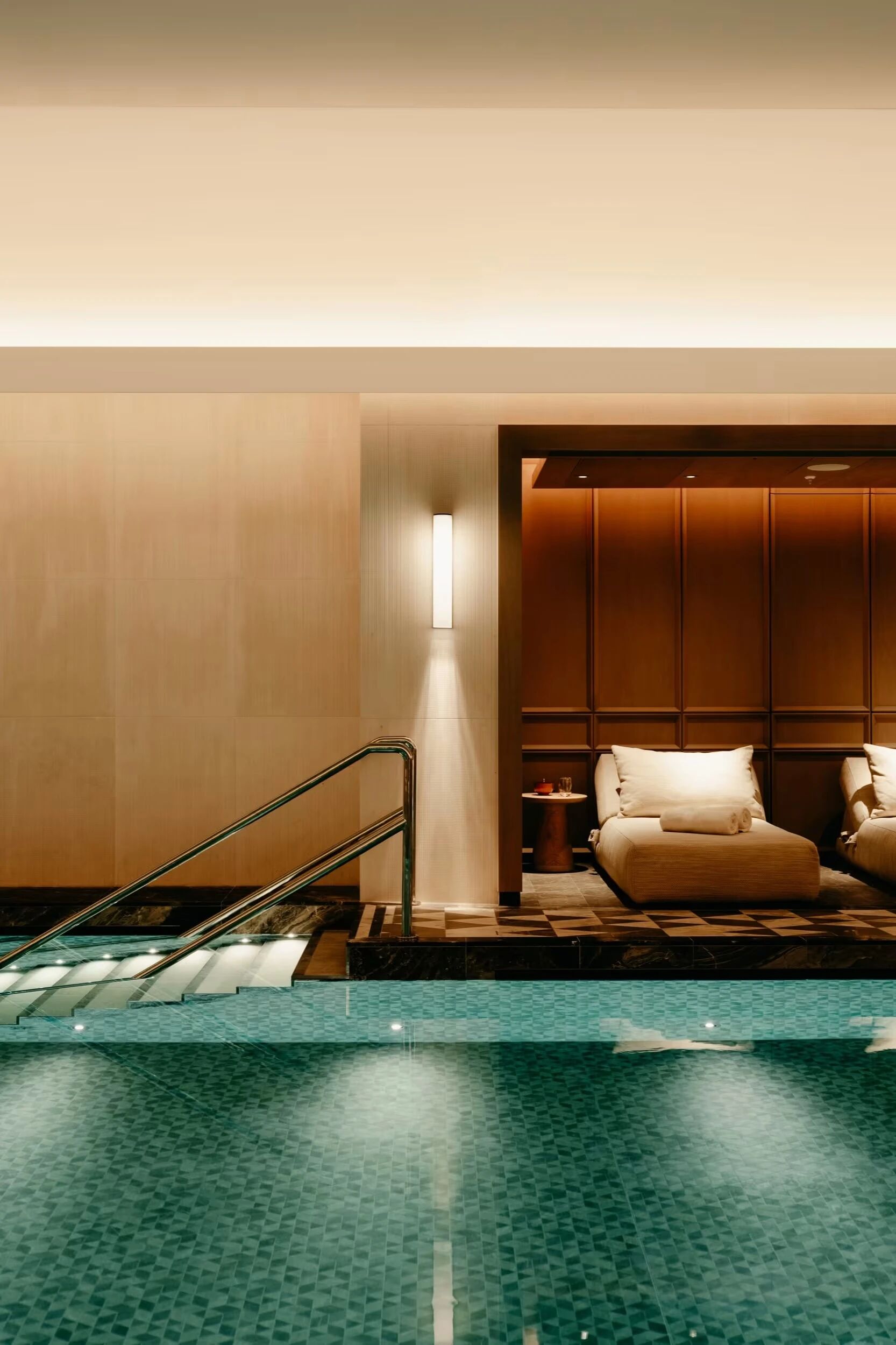 結合倫敦草本療愈與現代科技,五間理療室、25米泳池與繭式私密空間,打造身心放松的終極體驗。