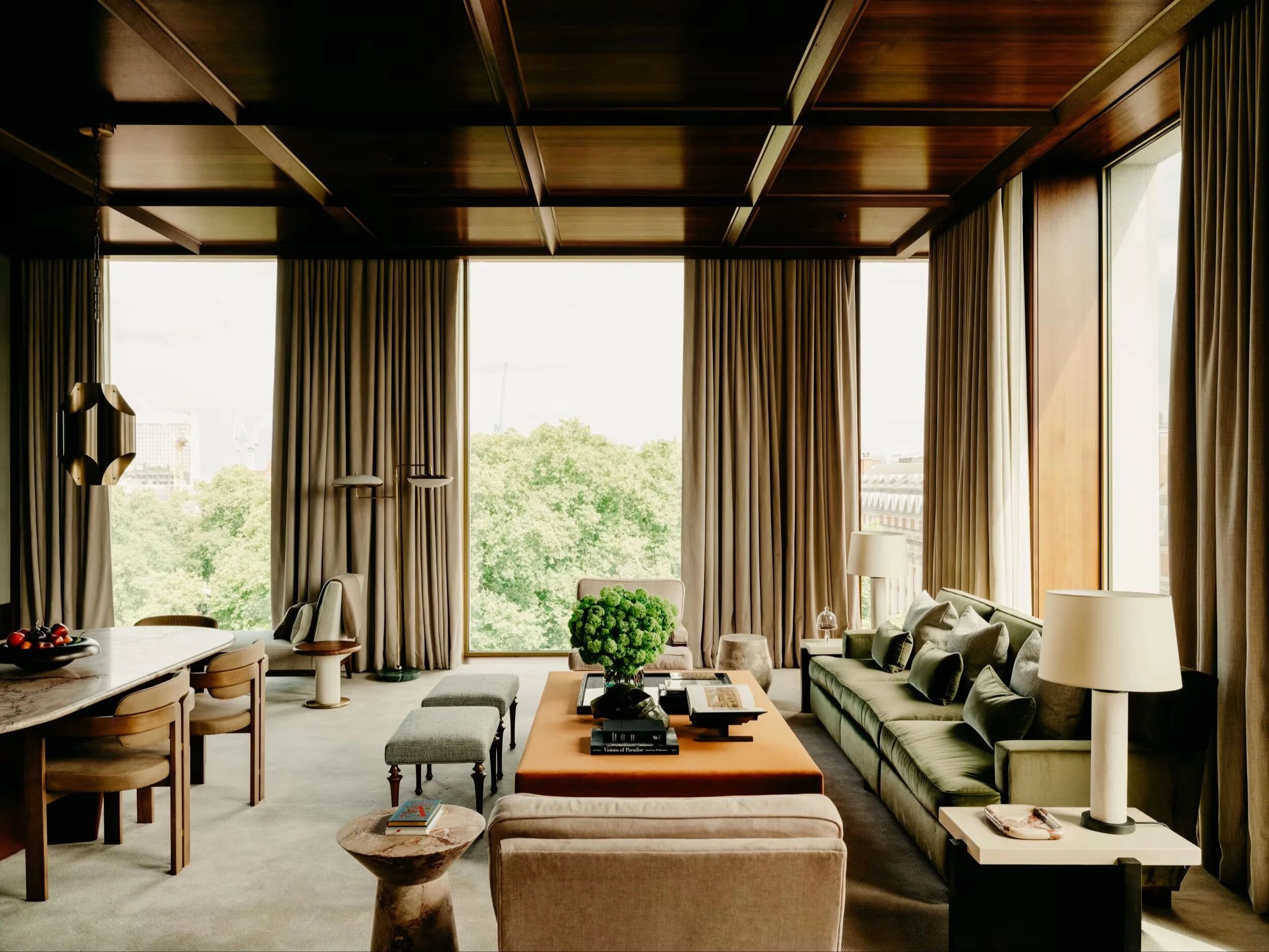 大多數套房都設有三面落地窗,視野直接面對格羅夫納廣場。自然光在不同時間灑入室內,使空間隨光線而生動。