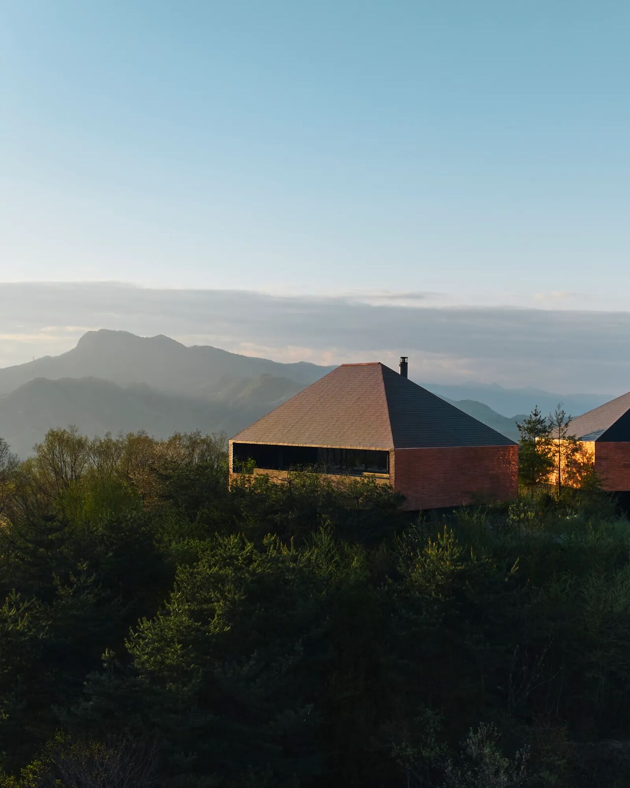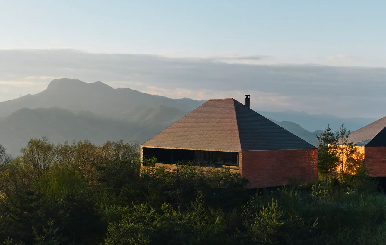 五棟銅板別墅依山脊呈北斗狀排列,設(shè)計師讓建筑成為山體的共生體。