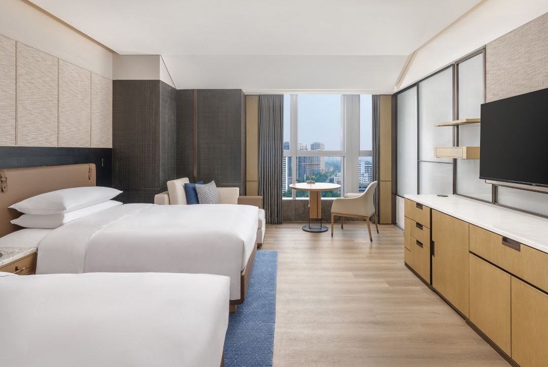 298間客房均配備闊景落地玻璃窗,可飽覽開元湖秀麗湖景與洛陽城市景觀。