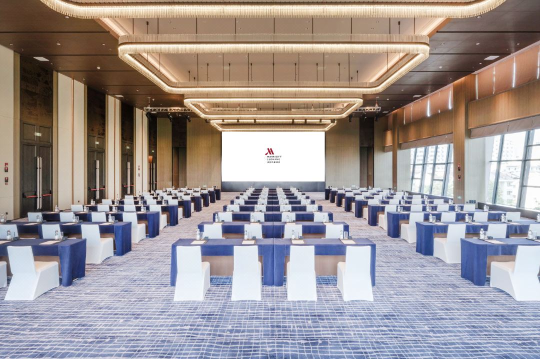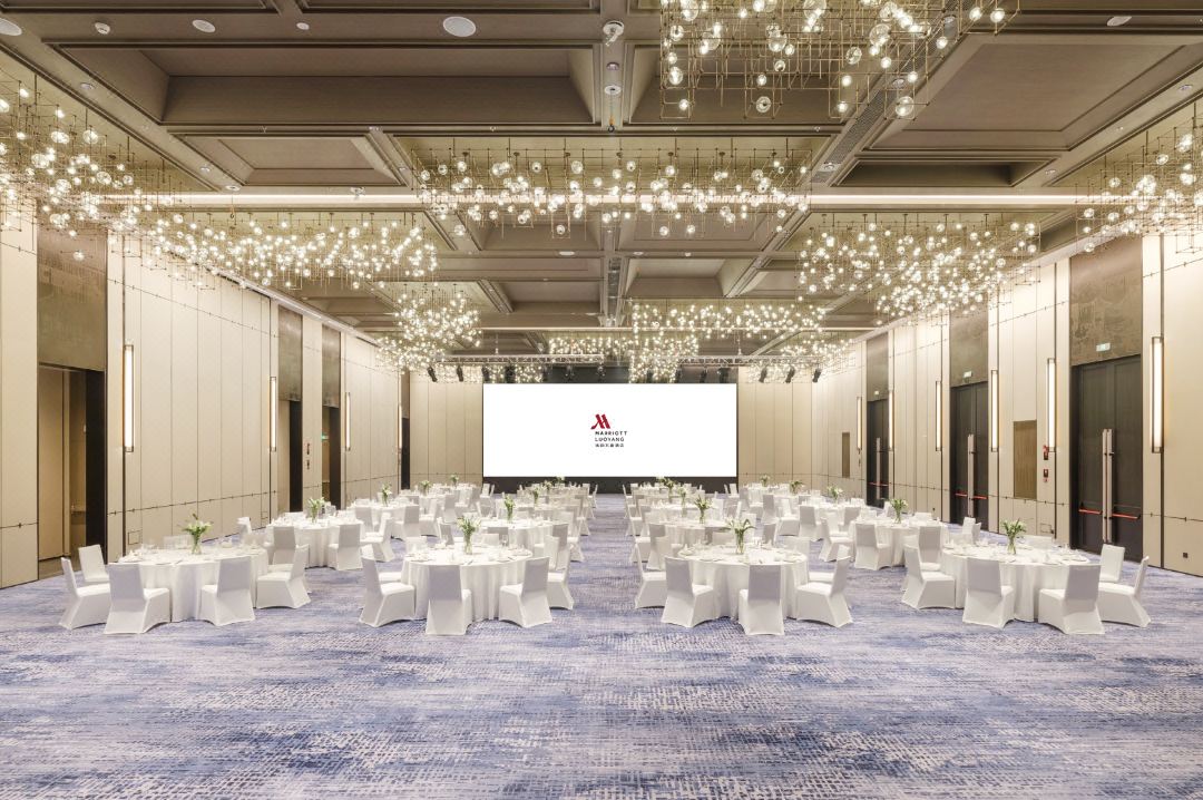 宴會廳與會議室設計延續了"東意西境"的理念,天花曲線如洛水漣漪,燈光流轉間,莊重而不失溫度。